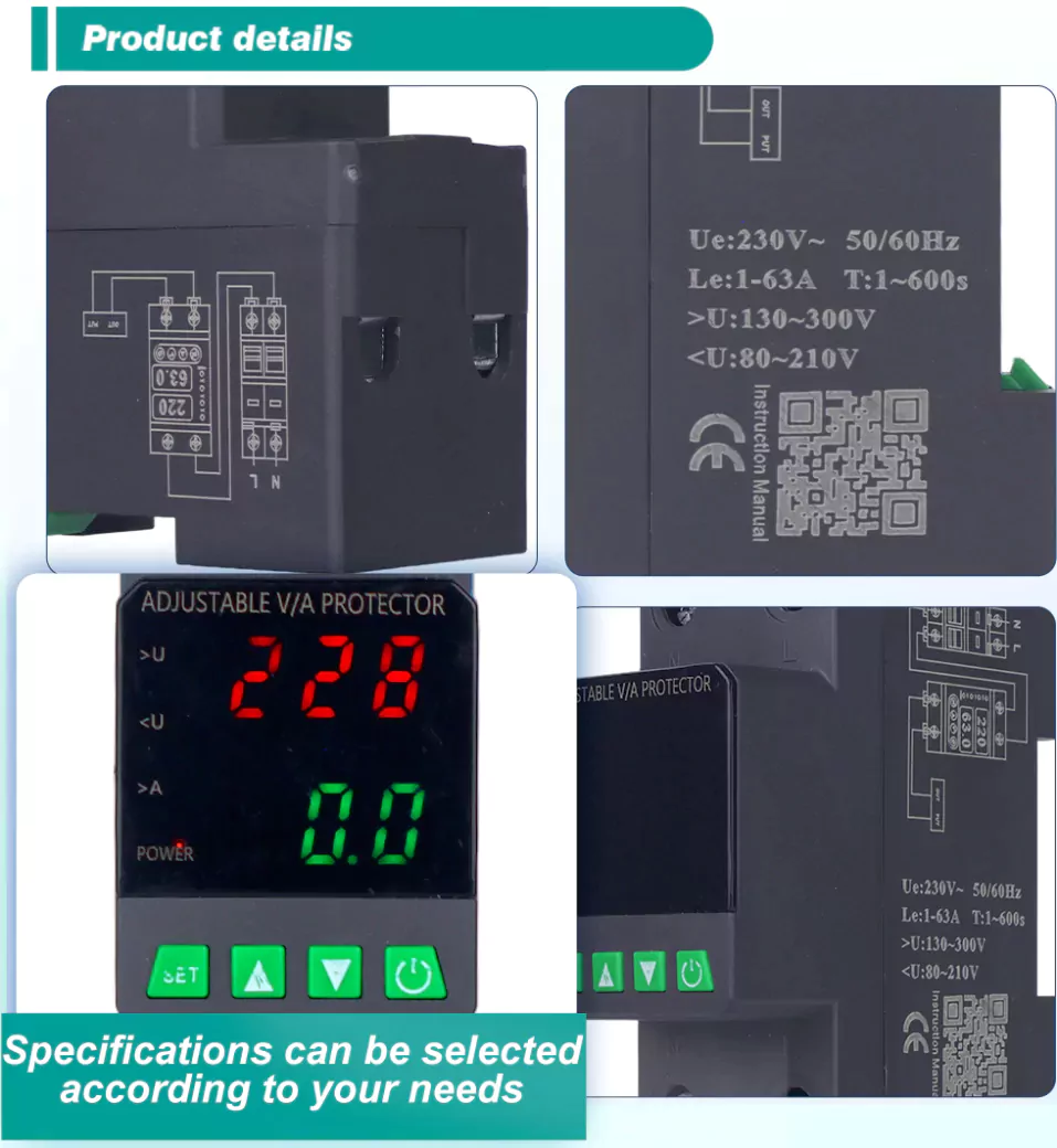 Vybaven digitálním displejem a vyrobeným s importovanými modulárními elektronickými komponenty, má vysokou spolehlivost a výkon. Ochranství automaticky a rychle odřízne napájení během abnormálních napětí (jako je přepětí, podpětí nebo kolísání mřížky) a obnovuje napájení po návratu napětí do normálu.