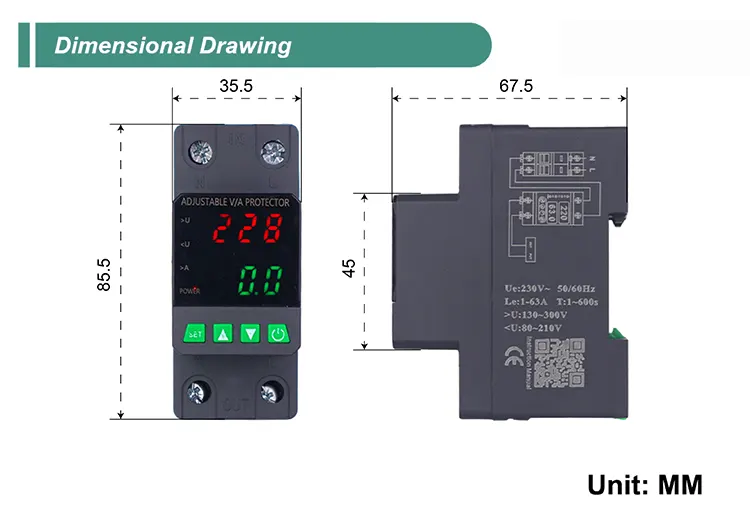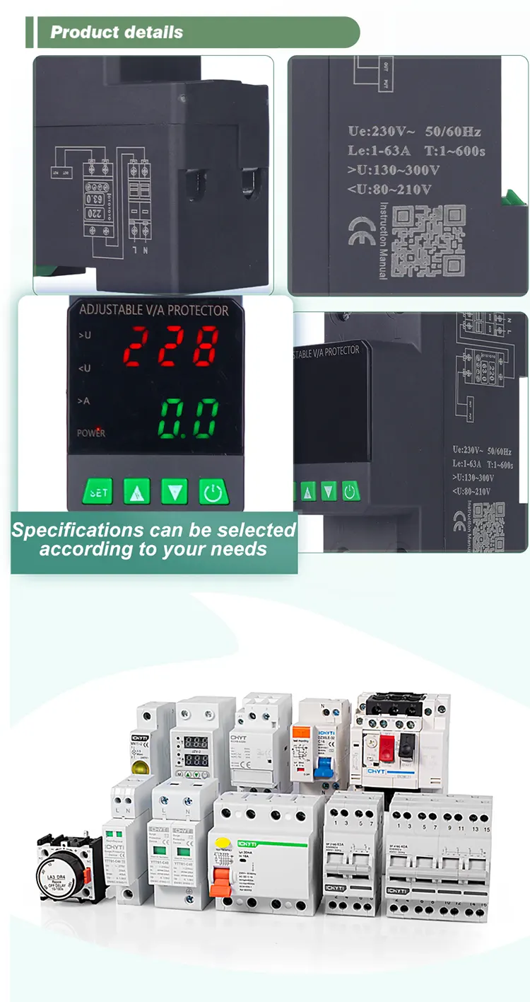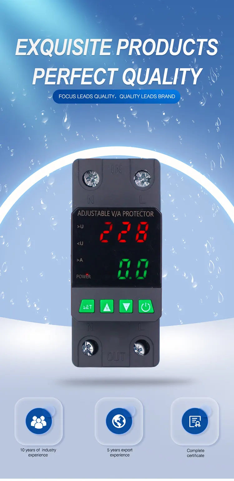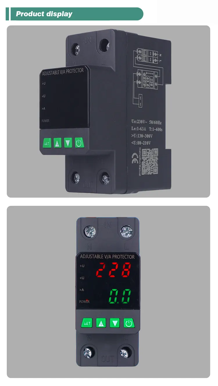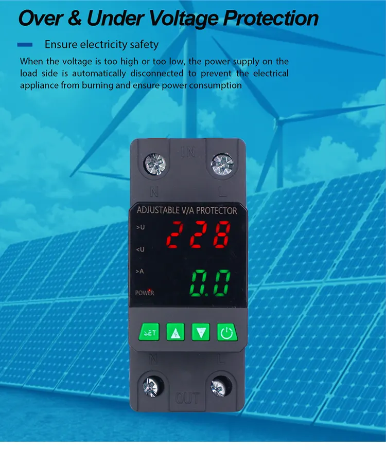 Vybaven digitálním displejem a vyrobeným s importovanými modulárními elektronickými komponenty, má vysokou spolehlivost a výkon. Ochranství automaticky a rychle odřízne napájení během abnormálních napětí (jako je přepětí, podpětí nebo kolísání mřížky) a obnovuje napájení po návratu napětí do normálu.